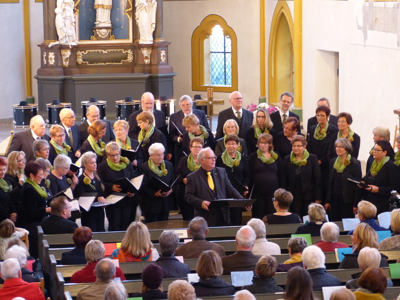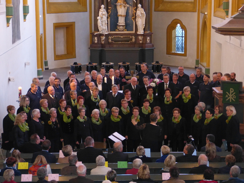 Aus diesem Anlass fand im Frühjahr 2016 bereits der Jubiläumsgottesdienst in der Kirche zu Geismar im feierlichen Rahmen statt. Zum krönenden Abschluss des Jubiläumsjahres gaben wir am 09. Oktober 2016 das Jubiläumskonzert unter dem Motto „Danke für die Lieder“ in der Stadtkirche in Fritzlar, zu dem wir uns als Gastchor den Projektchor „Reine Männersache“ aus dem Edertal unter der Leitung von Horst-Werner Bremmer eingeladen hatten. Zu unserer großen Freude waren viele Musikliebhaber unserer Einladung gefolgt und füllten die Kirche bis in die letzten Reihen, um unseren Liedern zu lauschen.