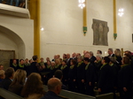 Zum Auftakt traten alle drei Chöre gemeinsam vor das Publikum und erfüllten die Kirche mit dem Klang von „ Doo dub dah“. Anschließend begrüßte unsere Vorsitzende Gerlinde Bräutigam als Vertreter des MSB Volker Bergmann und Klaus Trollhagen sowie Bundeschorleiter Karl-Heinz Wenzel. Der Vorstand des Sängerkreises Chatten war mit Reinhold Scherp, Jacqueline Roscher und Bernd Otto vertreten. Bürgermeister Hartmut Spogat und Helmut Krug als stellvertretender Ortsvorsteher waren als Vertreter der Stadt Fritzlar anwesend. Als Sponsoren waren von der VR-Bank Schwalm-Eder Anja Kukuck-Peppler und Christa Reuß anwesend sowie für die Kreissparkasse Schwalm-Eder Jürgen Bubenhagen. Angela Schlehuber leitete die beiden Geismarer Chöre von 2001 bis 2011 und überzeugte sich durch ihre Teilnahme am Konzert über die Weiterentwicklung ihrer Chöre. Frau Dekanin Tümmler als Hausherrin konnte leider nicht anwesend sein, hatte aber um die Übermittlung ihrer Grüße gebeten.